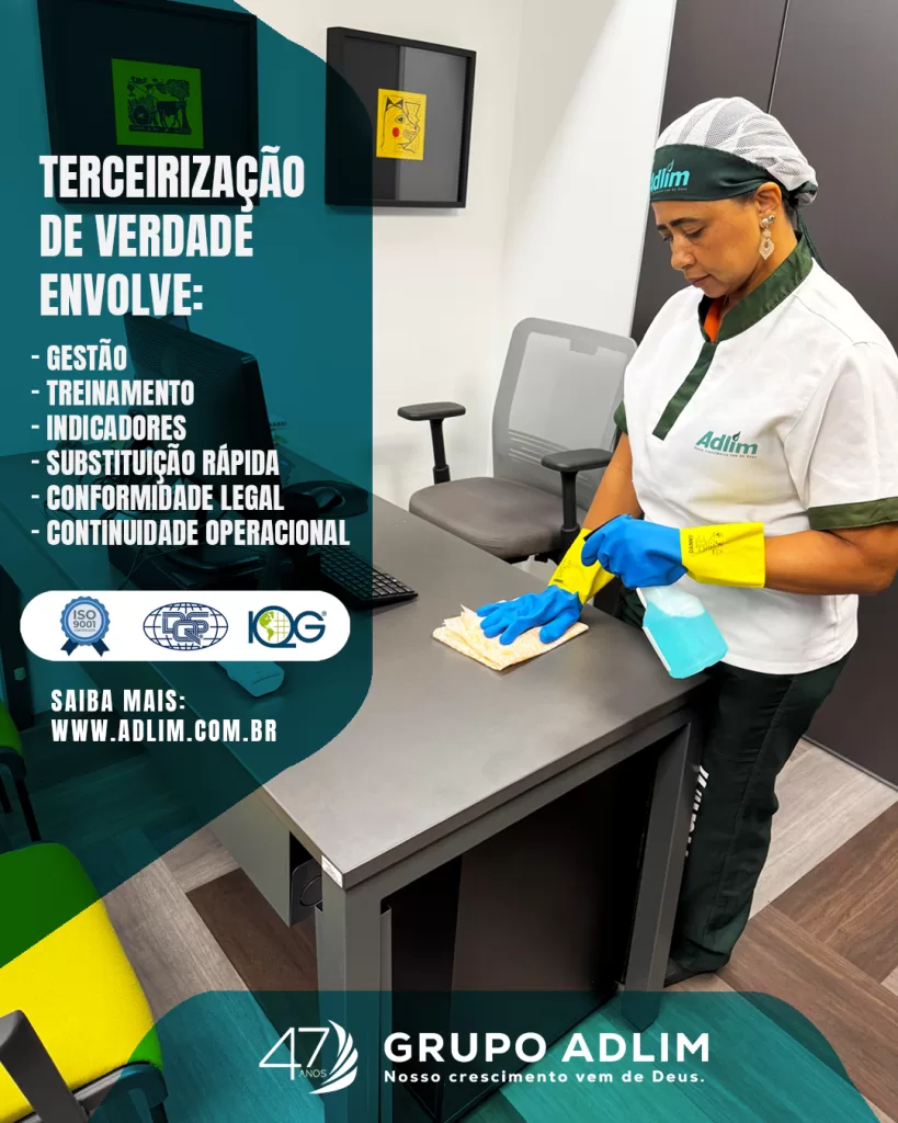O Grupo Adlim atua no segmento de terceirização de serviços, há mais de quatro décadas oferecendo soluções em limpeza profissional, portaria e apoio operacional para empresas que valorizam padrão, organização e excelência na execução.